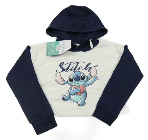 Nové - Bielo-tmavomodrá crop mikina so Stitchem a kapucňou Disney