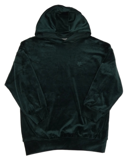 Tmavosmaragdová plyšová oversize dlhá mikina s hviezdičkou a kapucňou DESTINATION