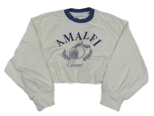 Bielo-tmavomodrá oversize crop mikina s citrony a nápismi PRIMARK