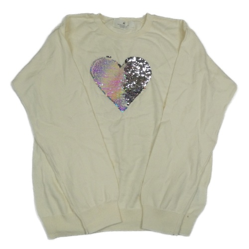 Krémový ľahký sveter so srdcem z překlápěcích flitrů H&M