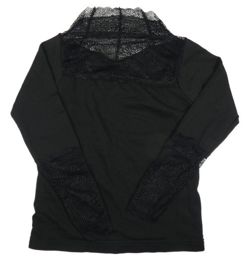 Čierny rebrovaný zateplený rolák s čipkou