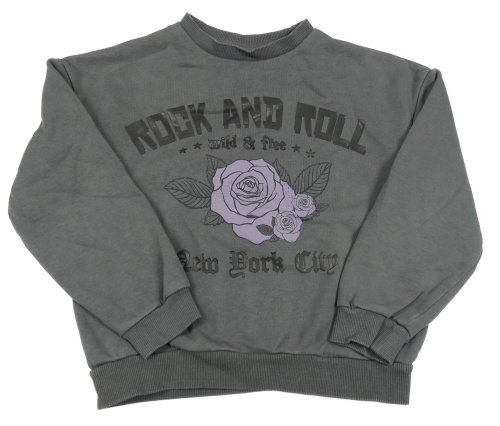 Antracitová mikina s nápismi a kvetmi C&A