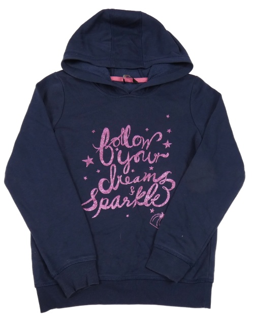 Tmavomodrá mikina s ružovým trblietavým nápisom a kapucňou George