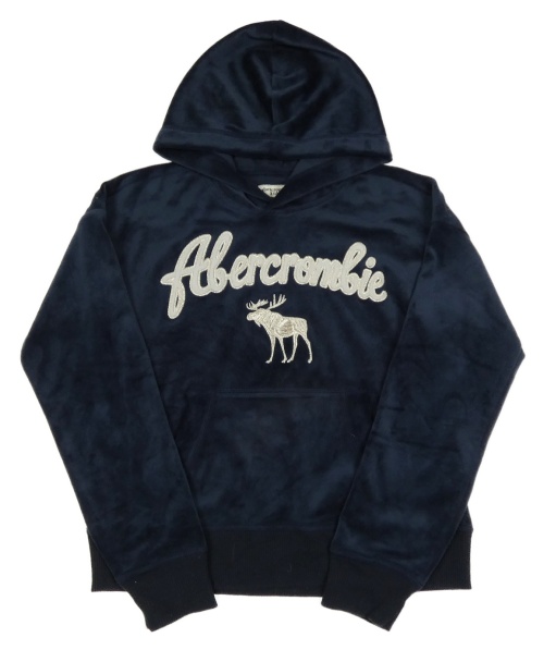 Tmavomodrá plyšová crop mikina s kapucňou Abercrombie&Fitch