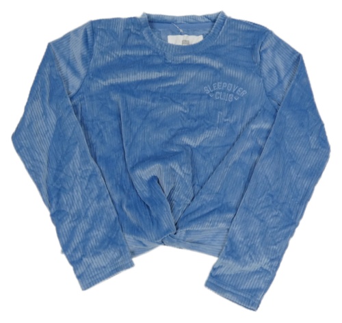 Modrá plyšová rebrovaná crop mikina s nápisom F&F