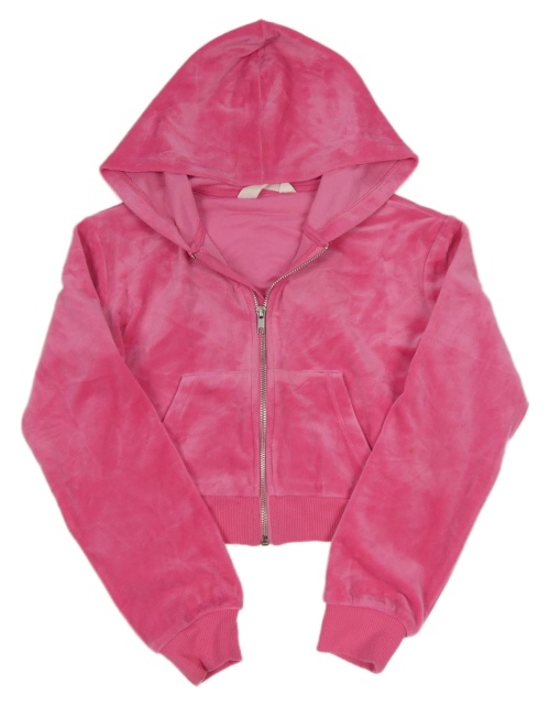 Ružová zamatová prepínaci crop mikina s kapucňou H&M