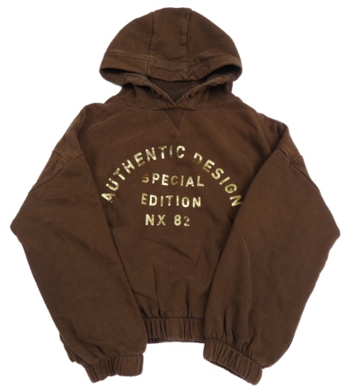 Tmavohnedá oversize crop mikina so zlatými nápisy a kapucňou Next