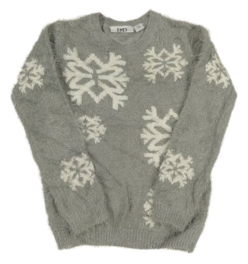 Sivý chlpatý sveter s vločkami L&D