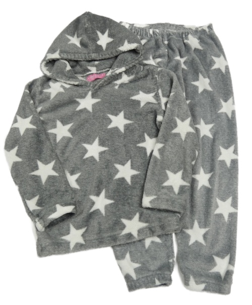 2set - Sivá plyšová mikina s hviezdami a kapucí + plyšové tepláky s hviezdami