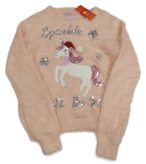 Nové -Svetloružový chlpatý sveter s jednorožcom a flitrami Primark