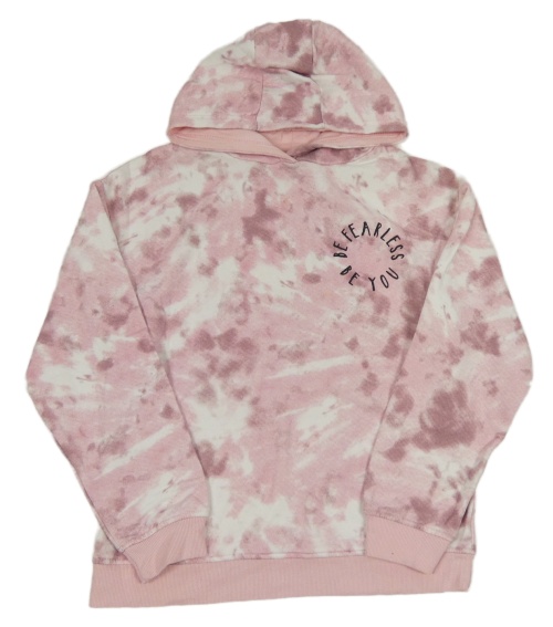 Svetloružová -bielo-mahagónovoá batikovaná mikina s nápismi a kapucňou PRIMARK