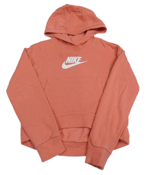 Lososová crop mikina s logom a vreckom a kapucňou Nike