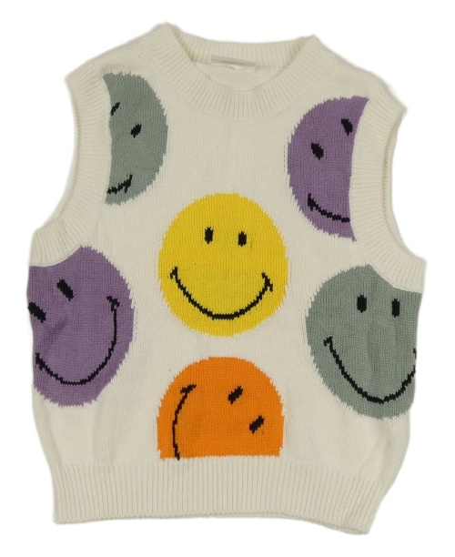 Biela pletená crop vesta s farebnymi smajlíky H&M
