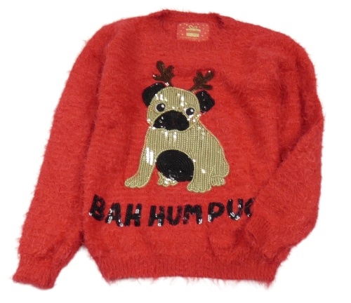 Červený chlpatý sveter s pejskem z flitrů Primark