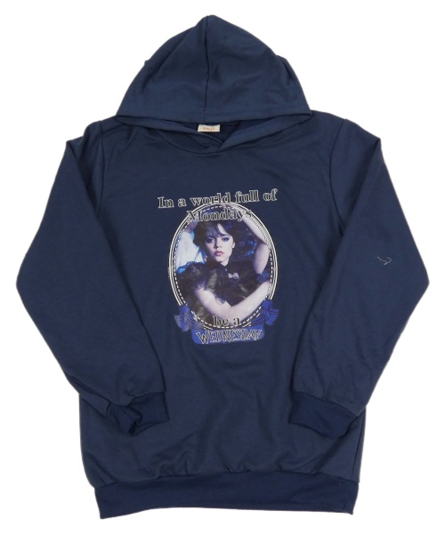 Tmavomodrá ľahká mikina s Wednesday a kapucňou