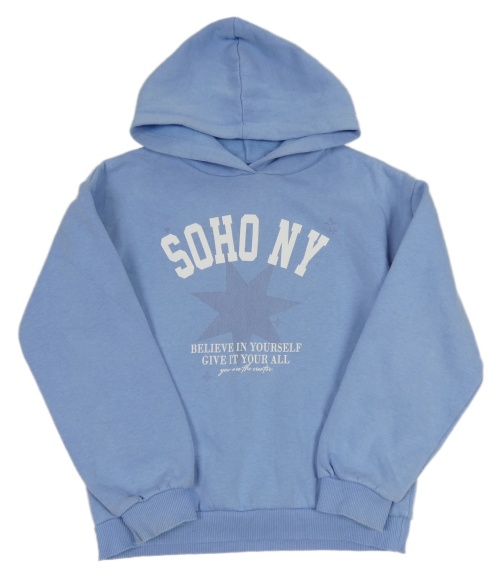 Svetlomodrá mikina s hviezdami a nápismi a kapucňou Matalan
