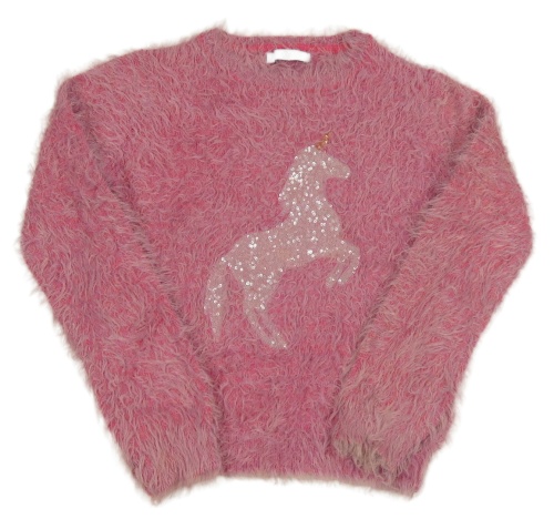 Ružový chlpatý sveter s jednorožcem z flitrů M&S