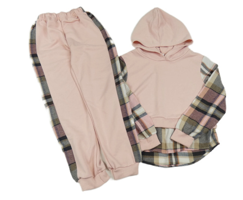 2set - Ružovo-kockovaná mikina s kapucí + tepláky Shein