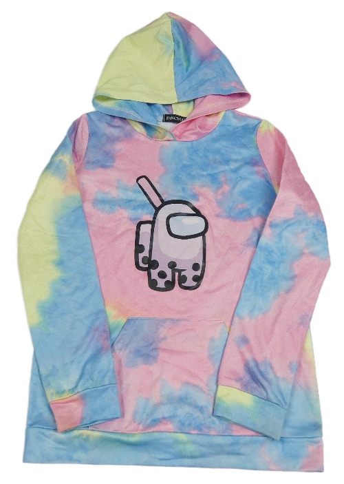 Modro-ružovo-žltá batikovaná športová mikina s Among Us a vreckom a kapucňou