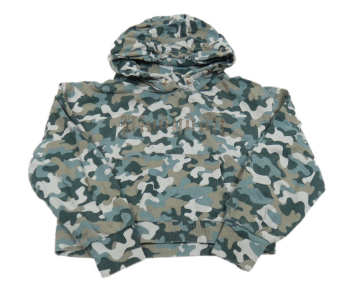 Kaki-sivo-béžová army crop mikina s nápisom a kapucňou
