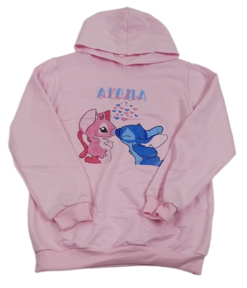 Svetloružová mikina so Stitchem a Angelou a kapucňou