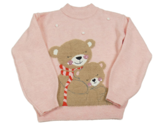 Svetloružový melírovaný sveter s medvedíkmi s flitrami a bambulkami PRIMARK