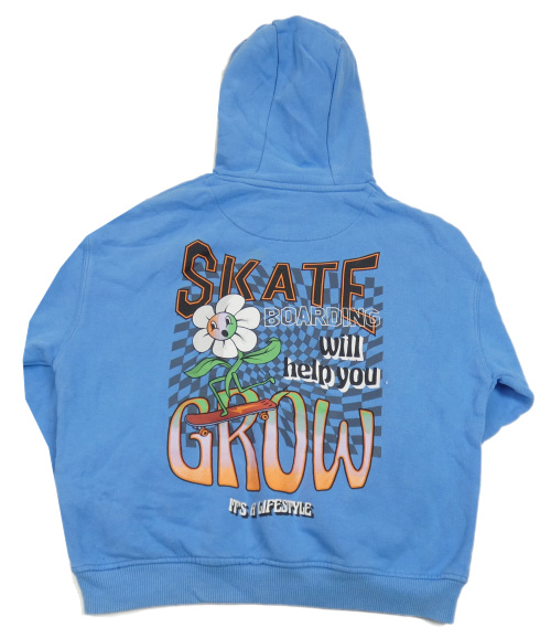 Modrá mikina s nápismi a vreckom a kvietkom a kapucňou M&S