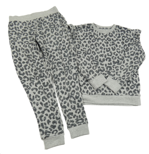 2set- sivý sveter s leopardím vzorem+ pletené nohavice F&F