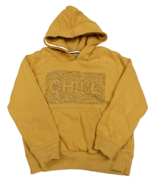 Okrová mikina s kamienkami a nápisom a kapucňou