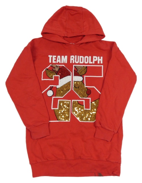 Červená dlhá mikina s číslom a sobom s flitrami a kapucňou F&F