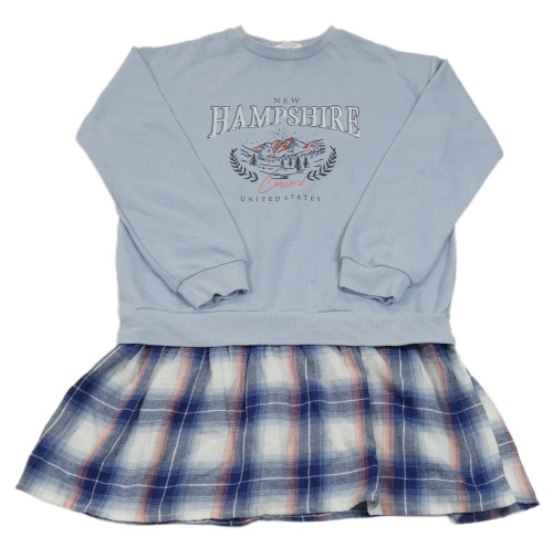 Modro-bielo-ružové teplákové šaty s nápismi a kostkovanou sukní Primark