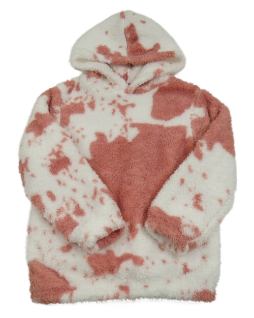Ružovo-biela batikovaná chlpatá mikina s kapucňou