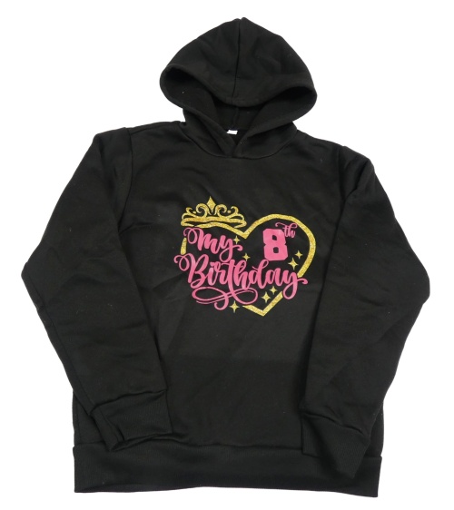 Čierna tepláková mikina so srdiečkom s nápismi a číslom a kapucňou