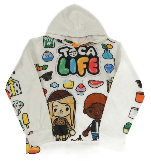 Biela mikina s obrázkami a kapucí - TocaBoca