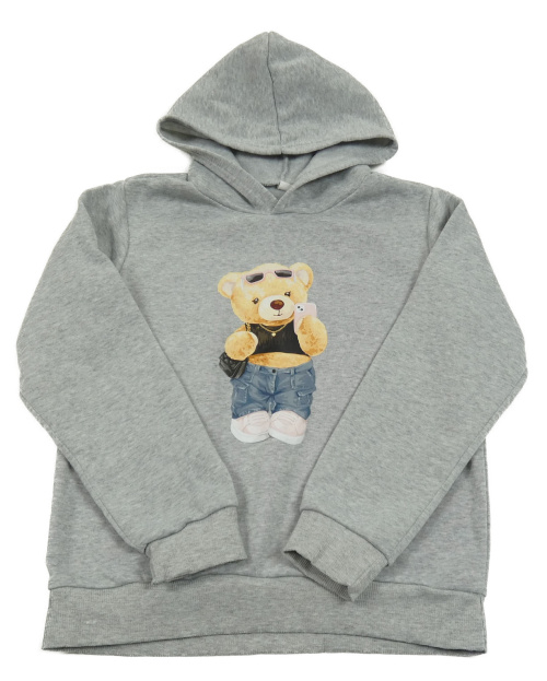 Sivá melírovaná tepláková mikina s medvedíkom a kapucňou