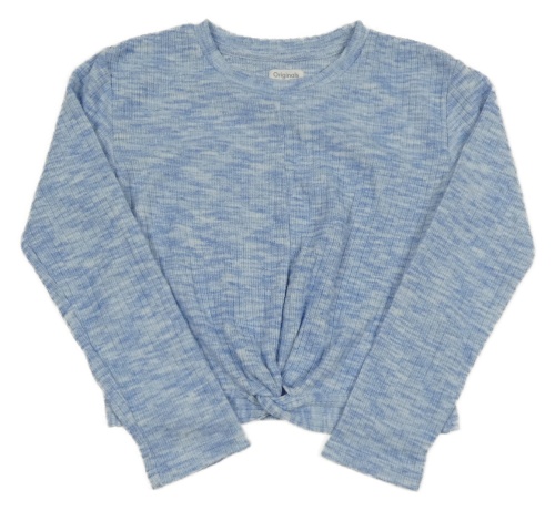 Svetlomodrý melírovaný rebrovaný crop úpletový sveter