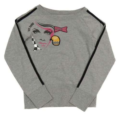 Sivá melírovaná mikina s obličejem a nášivkami a pruhmi teddy smith