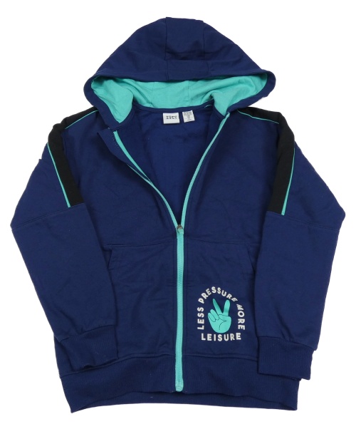 Tmavomodro-čierna prepínaci mikina s nápismi a kapucňou L&D