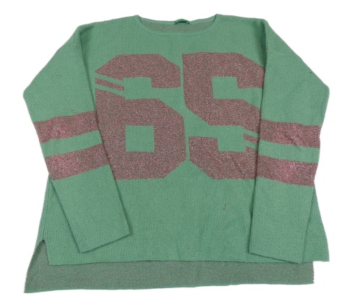 Zelenoolivový melírovaný sveter s číslom a pruhmi Benetton