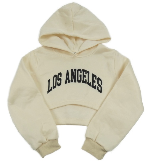 Smotanová crop mikina s nápisom a kapucňou Shein