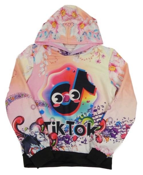 Ružovo-farebná ľahká mikina s kvetinami a kapucí - TikTok
