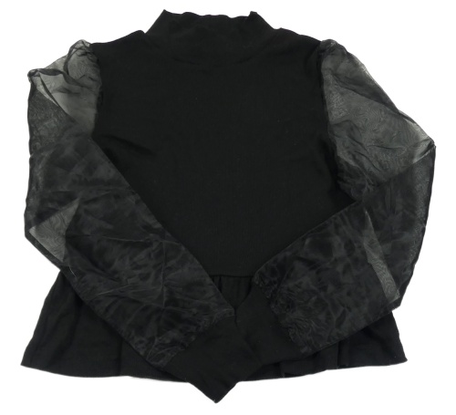 Čierny úpletový crop rolák s organzovými balonovými rukávy PEP&CO