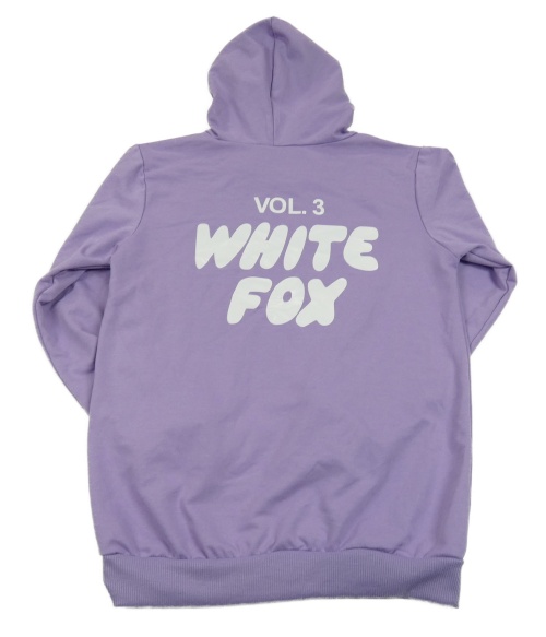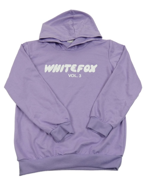 Fialová mikina s nápismi a kapucňou