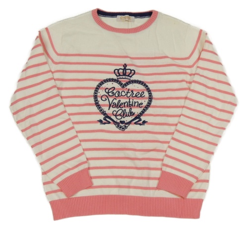 Bielo-ružový pruhovaný sveter s nápisom