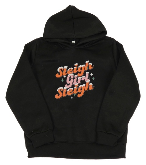 Čierna tepláková mikina s nápismi a kapucňou
