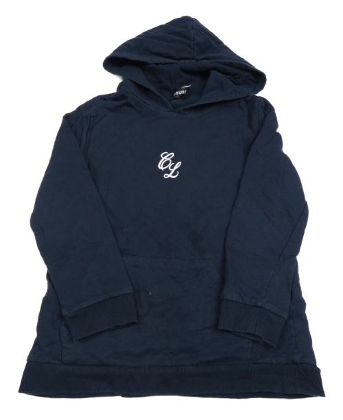 Tmavomodrá dlhá mikina s písmeny a kapucňou Closure