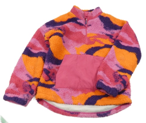 Ružovo-neónově oranžovo-fialová vzorovaná huňatá podšitá mikina Dunnes