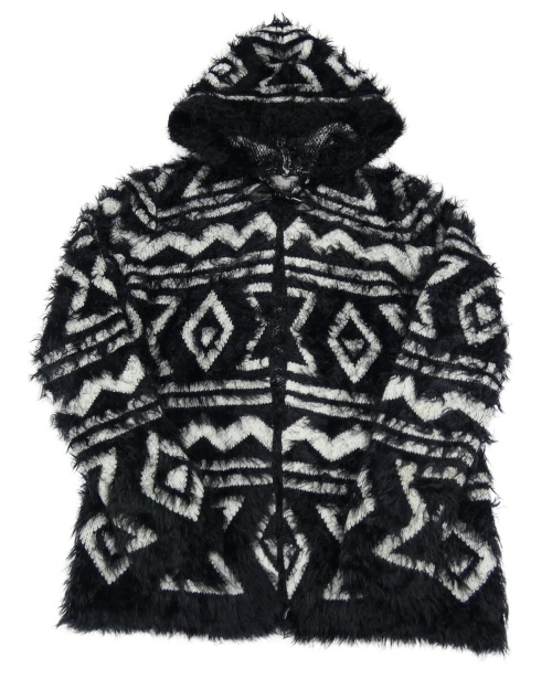 Čierno-biely vzorovaný chlpatý svetrový cardigan s kapucňou Matalan