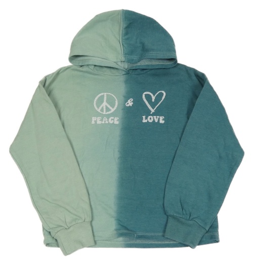Zeleno-tmavozelená mikina s obrázky z flitrů a kapucňou