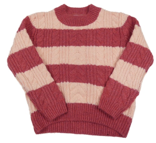 Vínovo-broskvový pruhovaný rebrovaný vzorovaný sveter PRIMARK